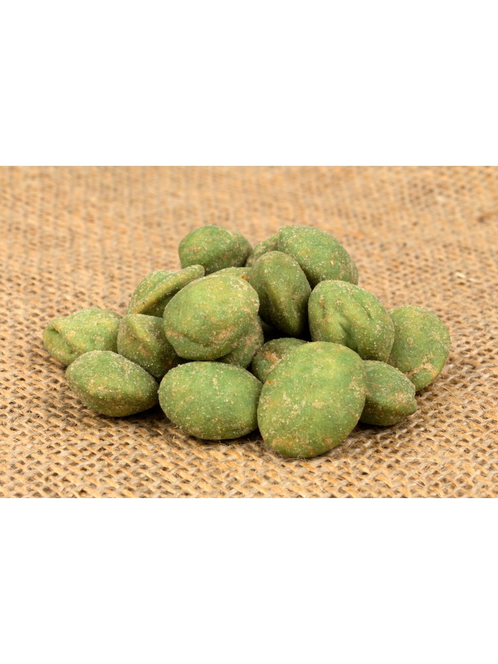 Složení : *ARAŠÍDY 27,46%, *PŠENIČNÁ mouka 22,09%, cukr 20,08%, kukuřičný škrob a mouka, palmový olej , sůl, *sušená SOJOVÁ omáčka (*PŠENICE, *SOJOVÉ boby, maltodextrin, sůl, koji, barvivo E150c), koření (*HOŘČIČNÁ příchuť, palmový olej, zahušťovadlo: E414, maltodextrin, antioxidant E392), bramborový škrob, kypřící látka E500, kyselina citronová E330, barvivo E141, Wasabi.