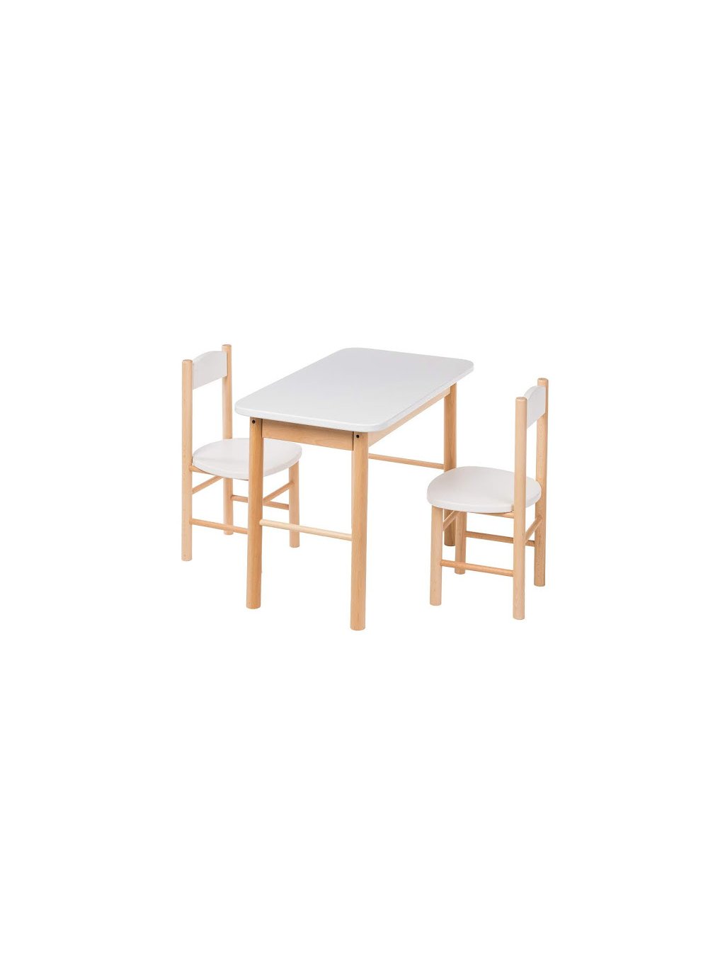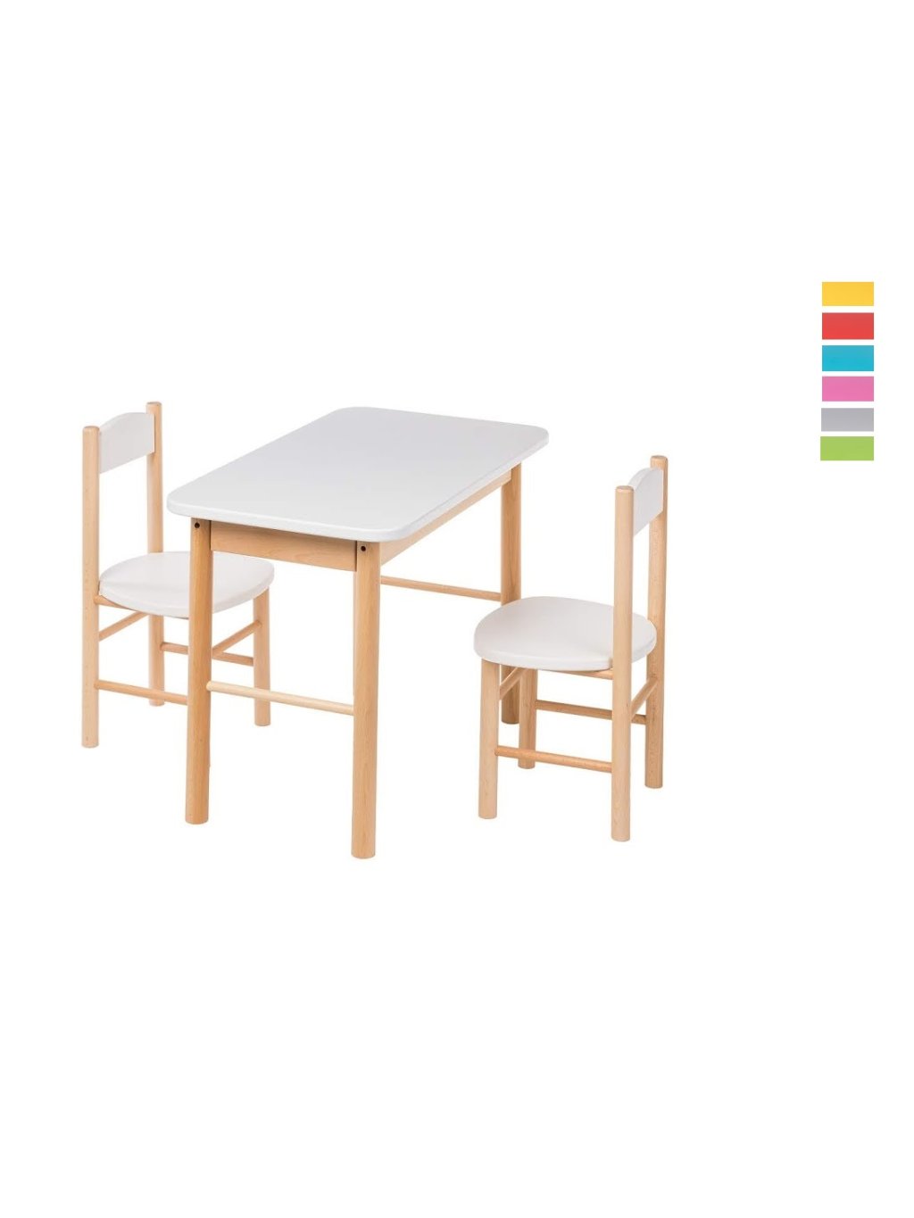 Dětský stoleček se židličkami je vyroben z bukového masivu a rozzáří každý dětský pokoj. Děti u něj mohou svačit nebo si hrát či malovat.