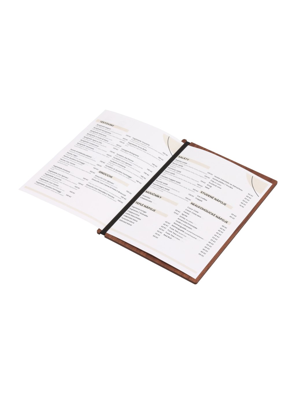 Jídelní lístek stačí vytisknout a vložit za pevnou gumu. Když se zašpiní nebo poškodí, mužete ho ihned vyměnit za nový, takže každý zákazník dostane elegantní kartu menu.
