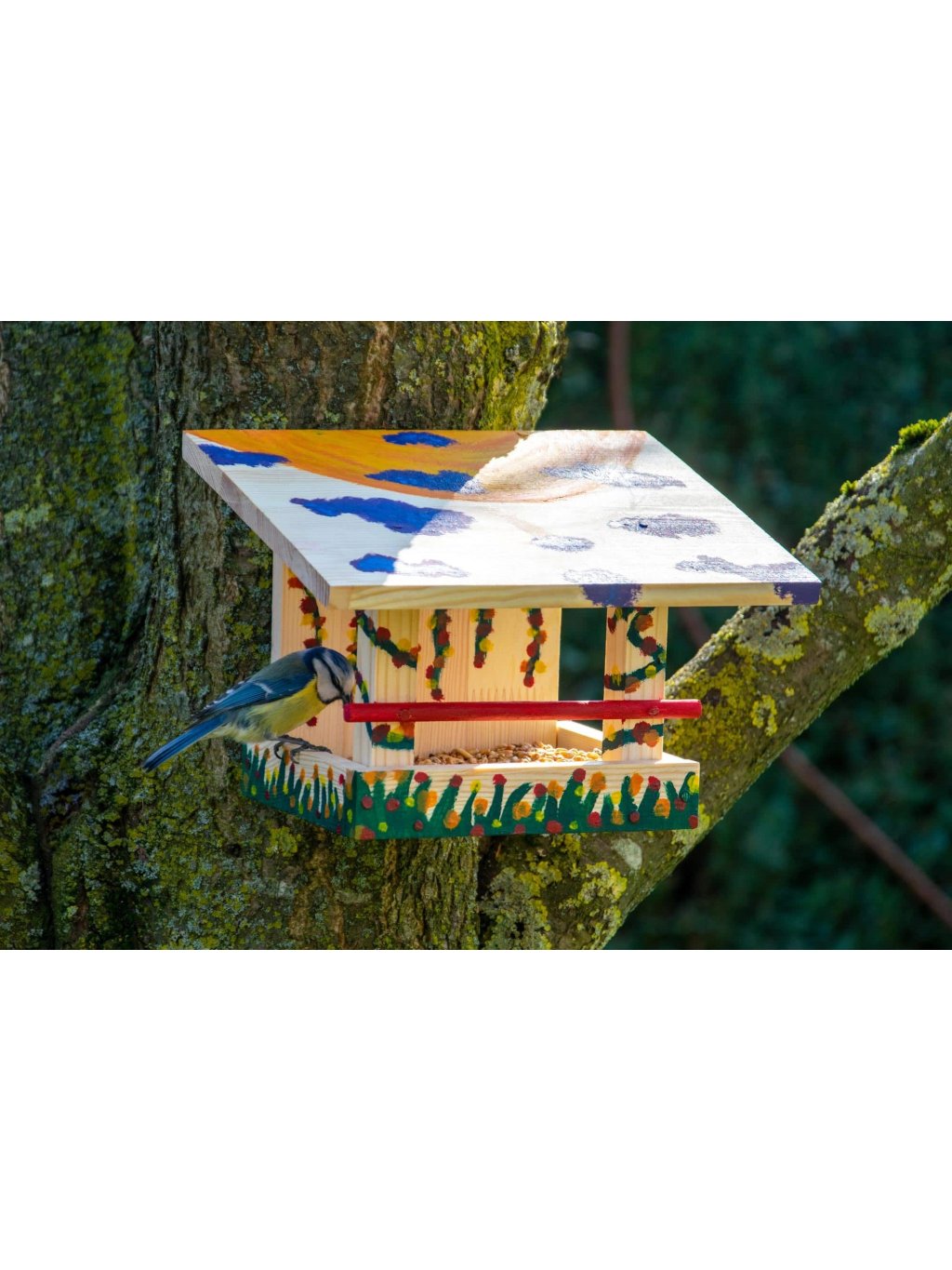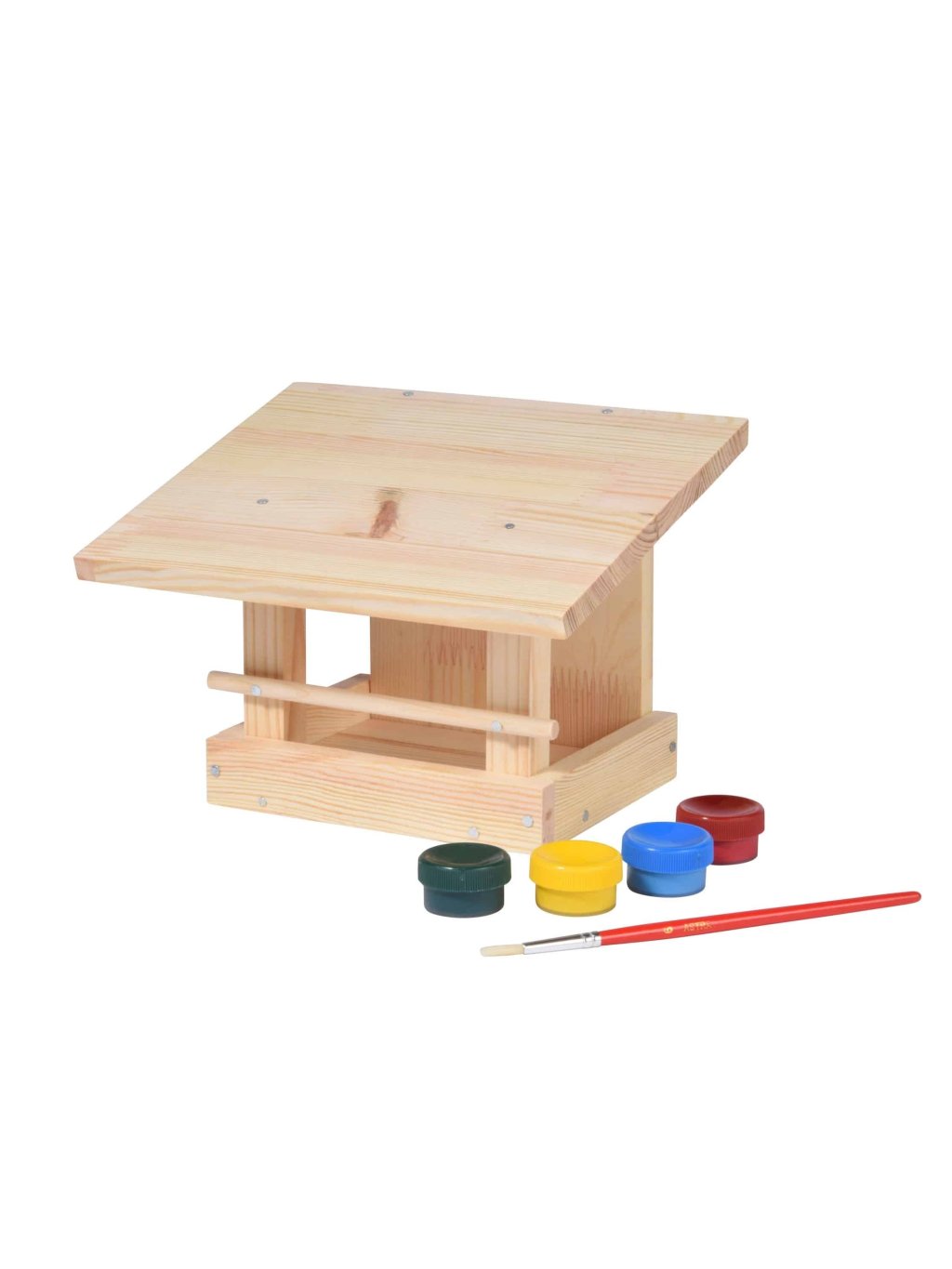 Krmítko je vyrobené z masivu borovice a balení obsahuje štětec a 4 barvy.