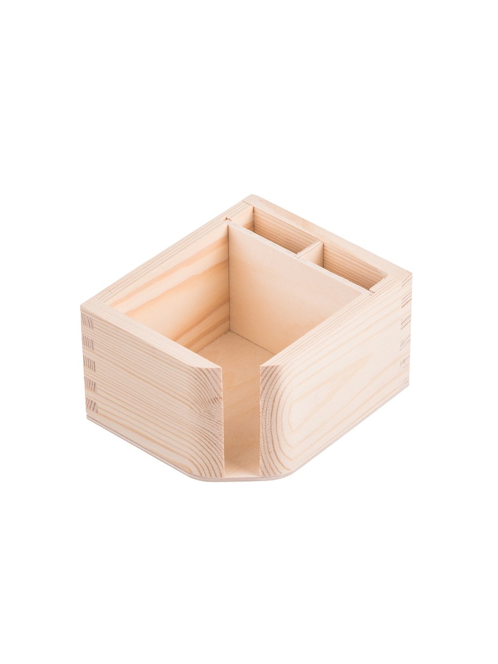 Malý dřevěný organizér do kterého můžete vložit bloček, propisky a třeba i sponky.