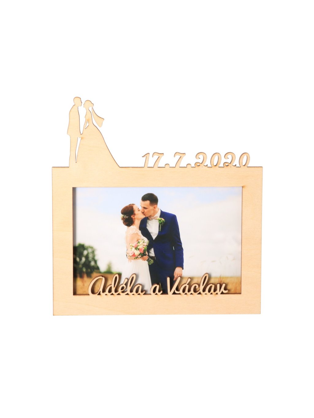 Dřevěný svatební fotorámeček s datem a jménem - 15x20 cm