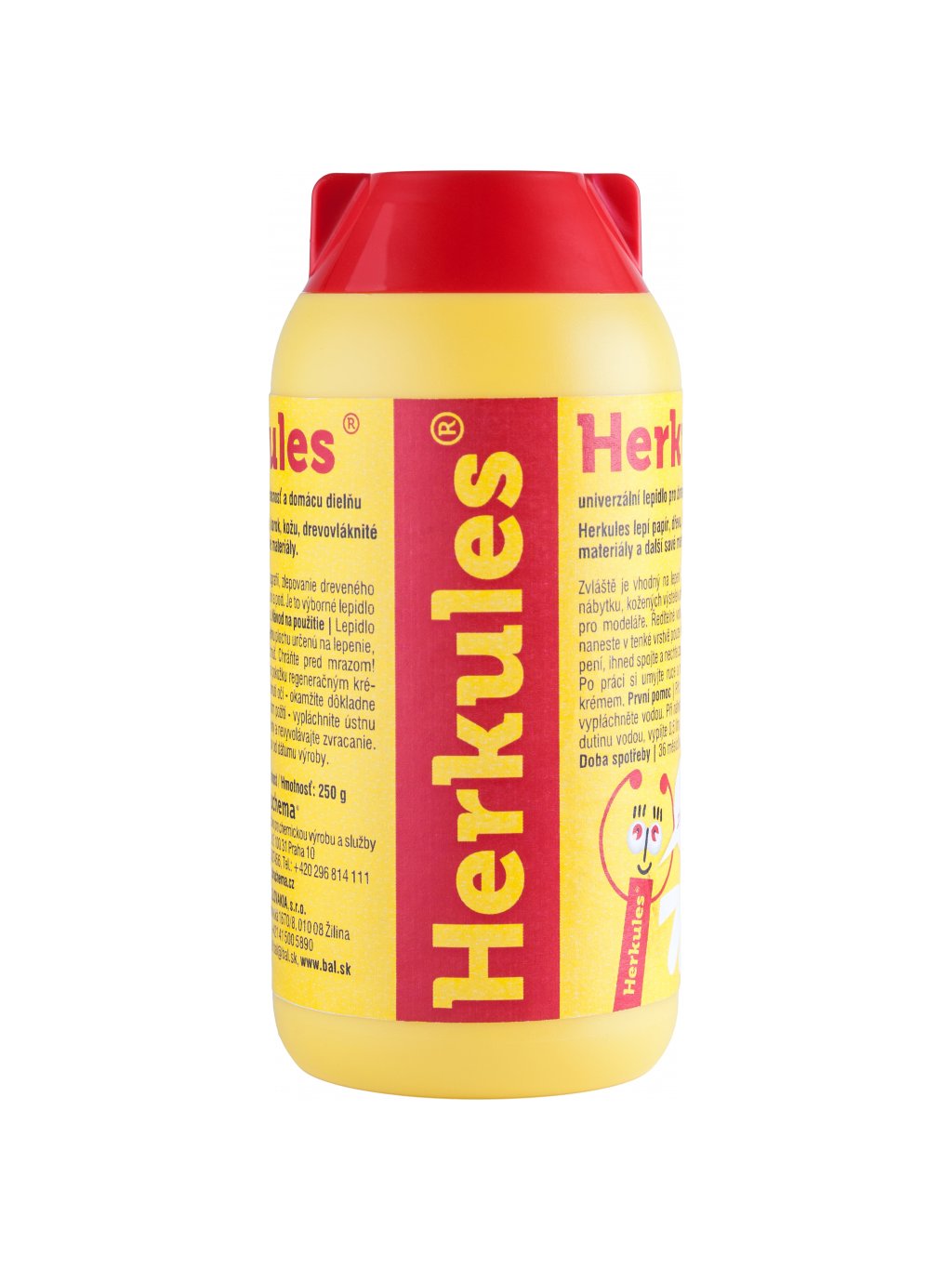 Univerzální disperzní lepidlo pro domácnost, školy, kancelář a domácí dílnu. Herkules lepí papír, dřevo, korek, kůži, dřevovláknité materiály a další savé materiály.