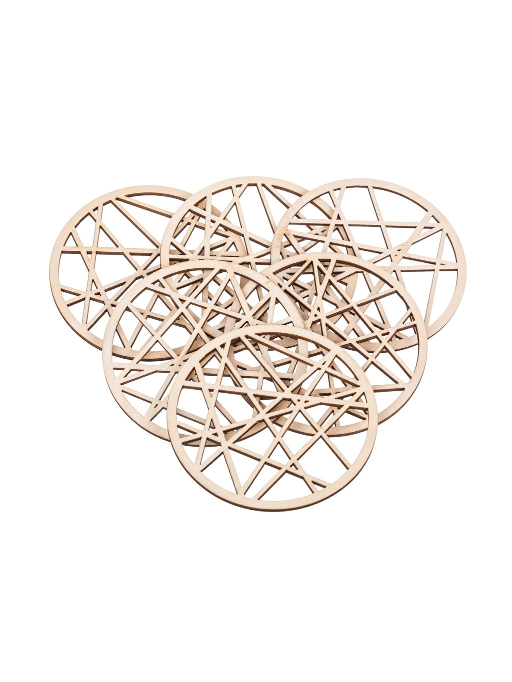Vyřezávané podtácky vyrobené z bukové překlížky, vhodné pod hrnky a sklenice nebo jen jako designový doplněk. Balení obsahuje 6 kusů.